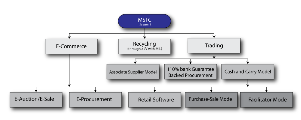 एमएसटीसी लिमिटेड भारत सरकार का उद्यम है जो विविध क्षेत्रों में सुदृढ़ ई-कॉमर्स सेवाएं प्रदान करने में अग्रणी संस्था है। बाजार के अग्रणी कंपनी के रूप में, एमएसटीसी अपने व्यापक अनुभव और अत्याधुनिक प्रौद्योगिकी का लाभ उठाकर ऐसे अनुकूलित समाधान प्रदान करता है, जो खरीद, बिक्री और व्यापार में पारदर्शिता, दक्षता और प्रतिस्पर्धात्मकता को बढ़ाता है ।